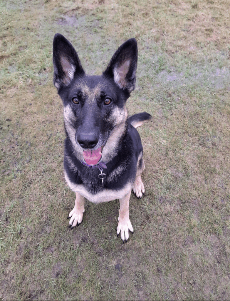 Hattie the German Shepherd, was rescued from the streets of Ireland, where she had been found as a very thin stray dog, it was thought that she had been abandoned after having a litter of puppies, but was still at a very young age herself.